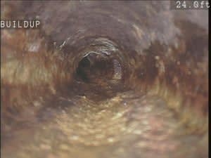 Buildup occurs when certain food waste materials adhere to the pipe wall and harden, often observed in cast iron pipes. Substances like fats, oils, and grease (FOG) are major contributors to this condition. As buildup thickens, it restricts the pipe's passageway.
