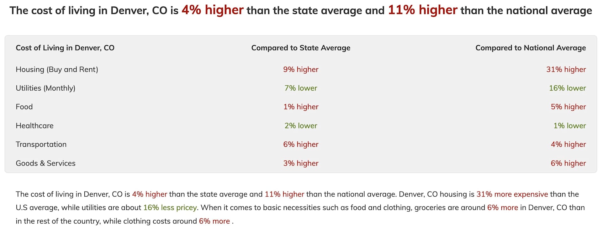 - Neighboring States: States like Colorado, Arizona, Utah, and New Mexico offer lower costs of living compared to Denver metro. Cities such as Albuquerque, Tucson, and Salt Lake City provide relatively affordable housing options while still offering amenities and opportunities for employment.